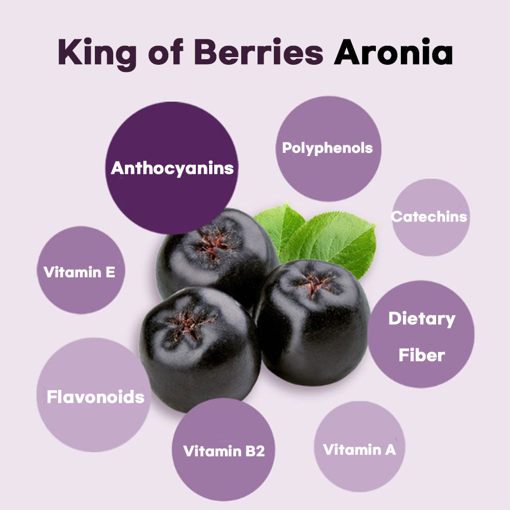 Each box contains the deep nutrition of 333 whole aronia berries, known as the “king of berries” for their rich polyphenol and anthocyanin content.