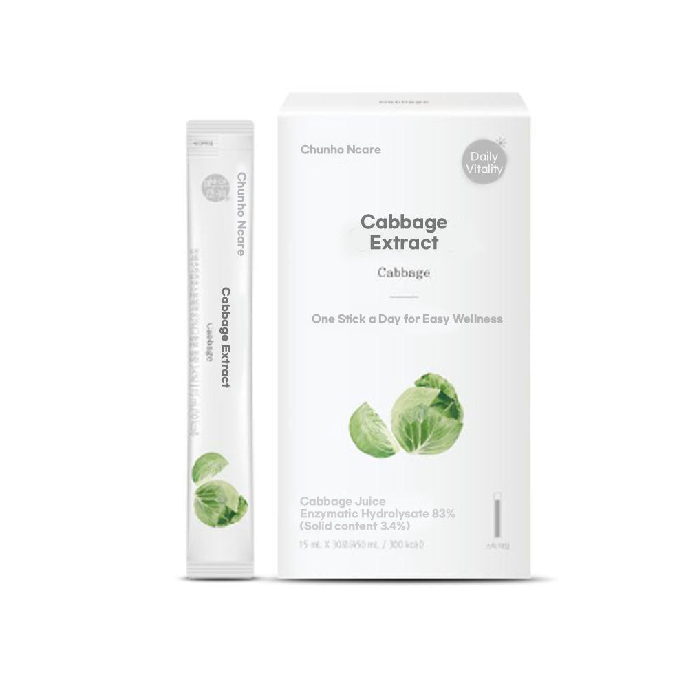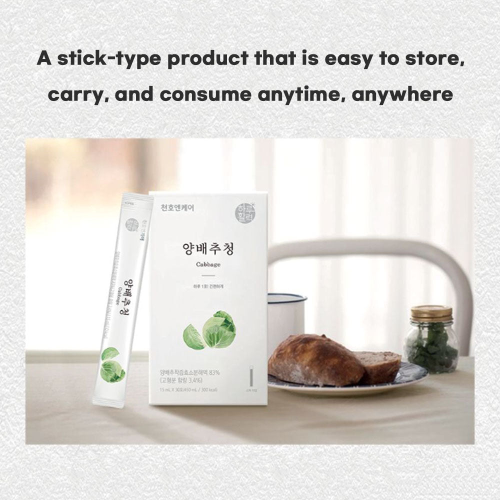 Chunho Ncare Korean Cabbage Juice Concentrate, 100% Pesticide-Free Korean Cabbage, No Water Added, NFC Cold Pressed, Easy-Cut Liquid Stick Pouch, HACCP Certified (15ml × 30sticks)