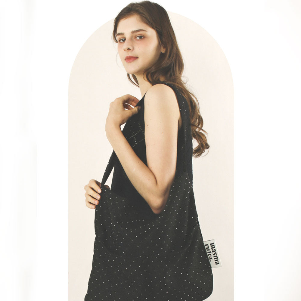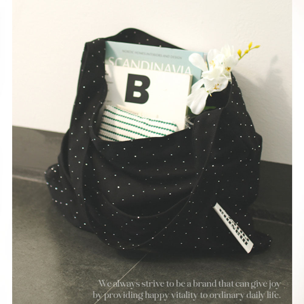 Featuring a sophisticated black canvas with a twilight-inspired touch, this eco bag combines subtle charm with everyday functionality.