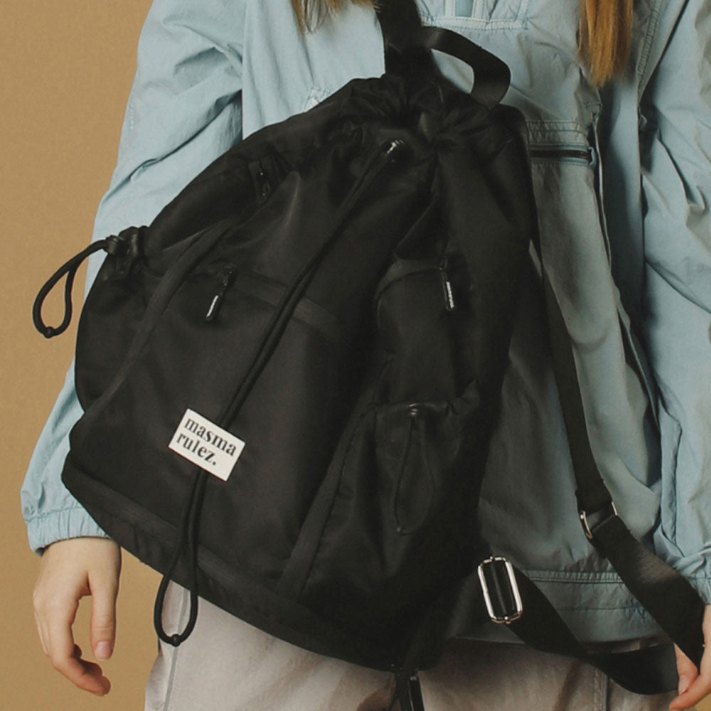 The Zipper String Backpack in black is a versatile companion for your daily adventures. It features a roomy interior that fits up to a 15-inch laptop, with water-resistant nylon to protect your belongings. The drawstring and zipper closure provide double security, while padding and reinforcement keep the shape sturdy and comfortable. Whether you're headed to class, commuting, or exploring the city, this backpack blends style and practicality in every step.