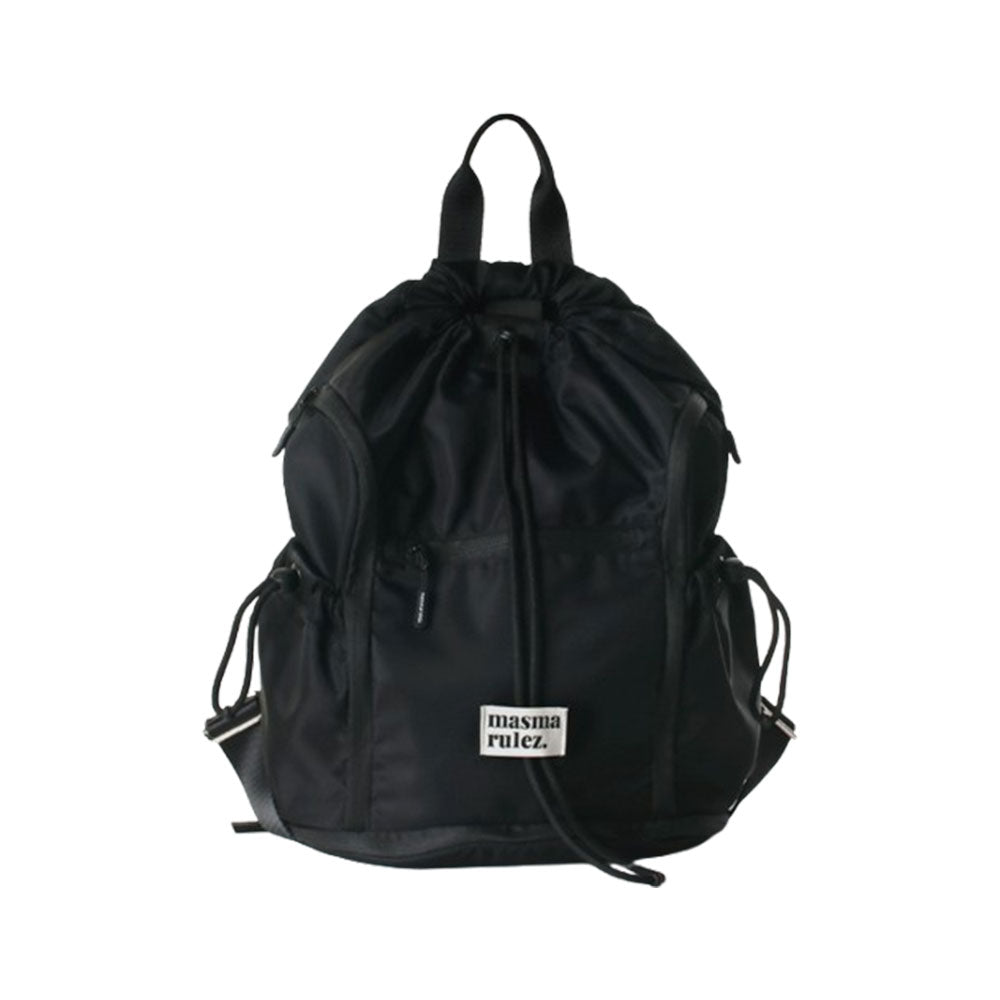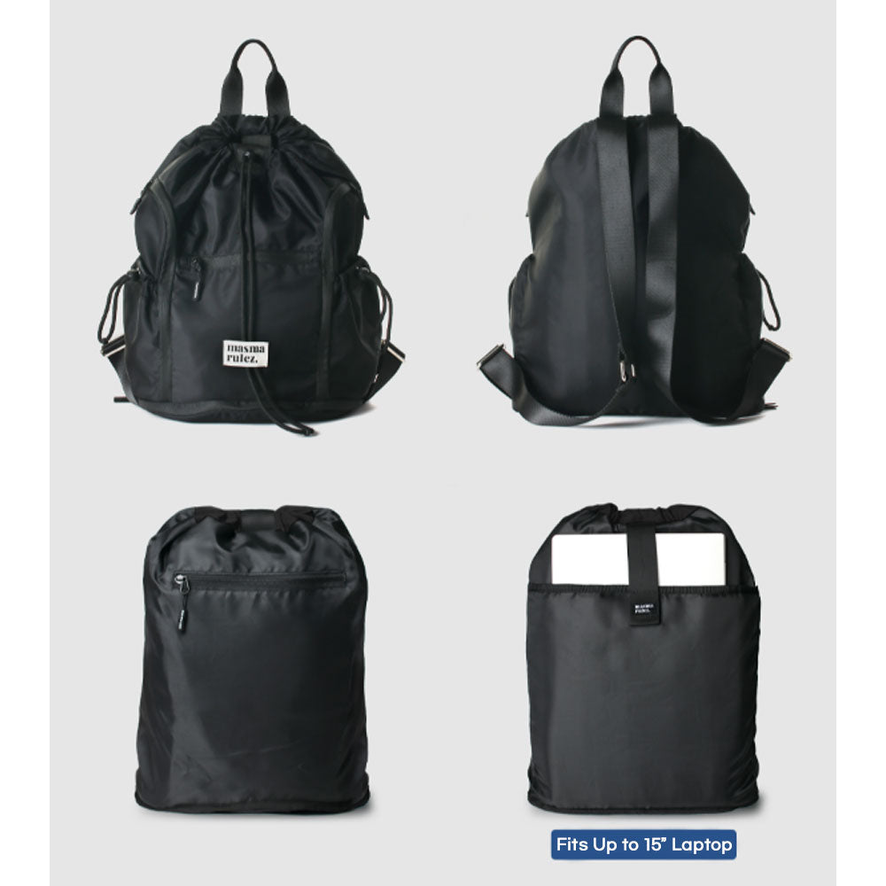 Masmarulez Zipper String Backpack – Water-Resistant Nylon Backpack for Women & Men, Fits 15" Laptop, Lightweight Daily Travel Bag with Drawstring Closure (Black)