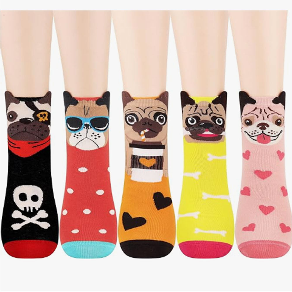 Women's Dog Socks Gifts Cute Animal Socks Gifts for Women 5pairs Pug